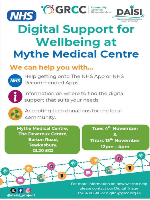 We’re pleased to announce that Ella-May from the DAISI charity will be running two drop-in support sessions at Mythe Medical Centre to help our patients get started with the NHS App.