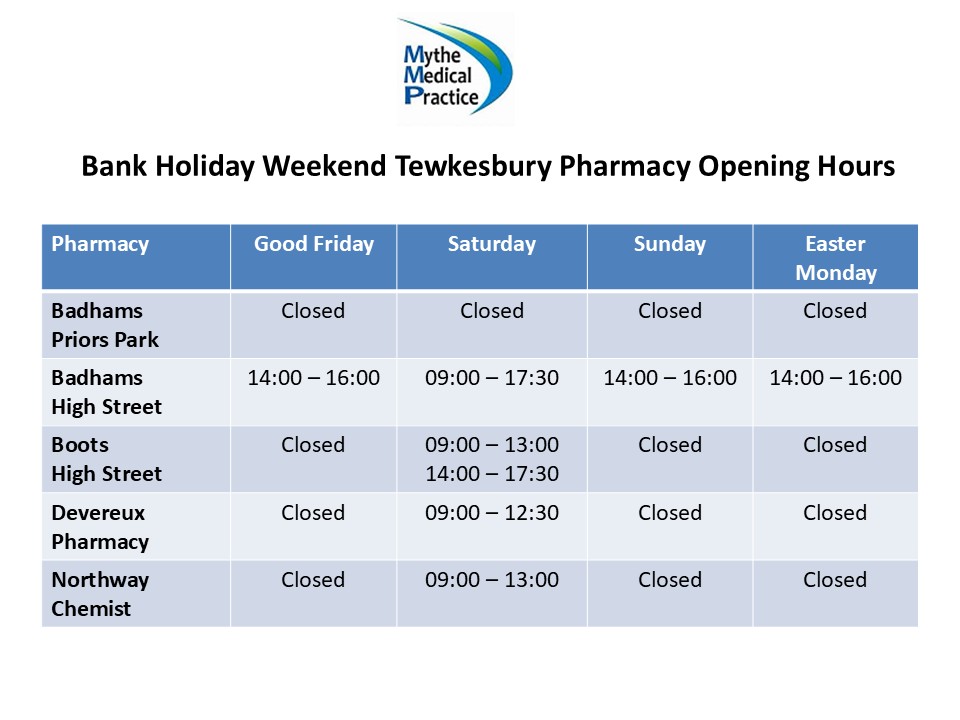 Pharmacy Opening Hours Easter Bank Holiday Weekend